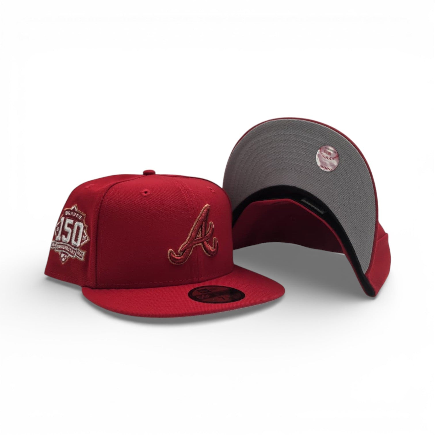 Red Atlanta Braves Gray Bottom 150th Anniversary Side Patch New Era 59Fifty Fitted