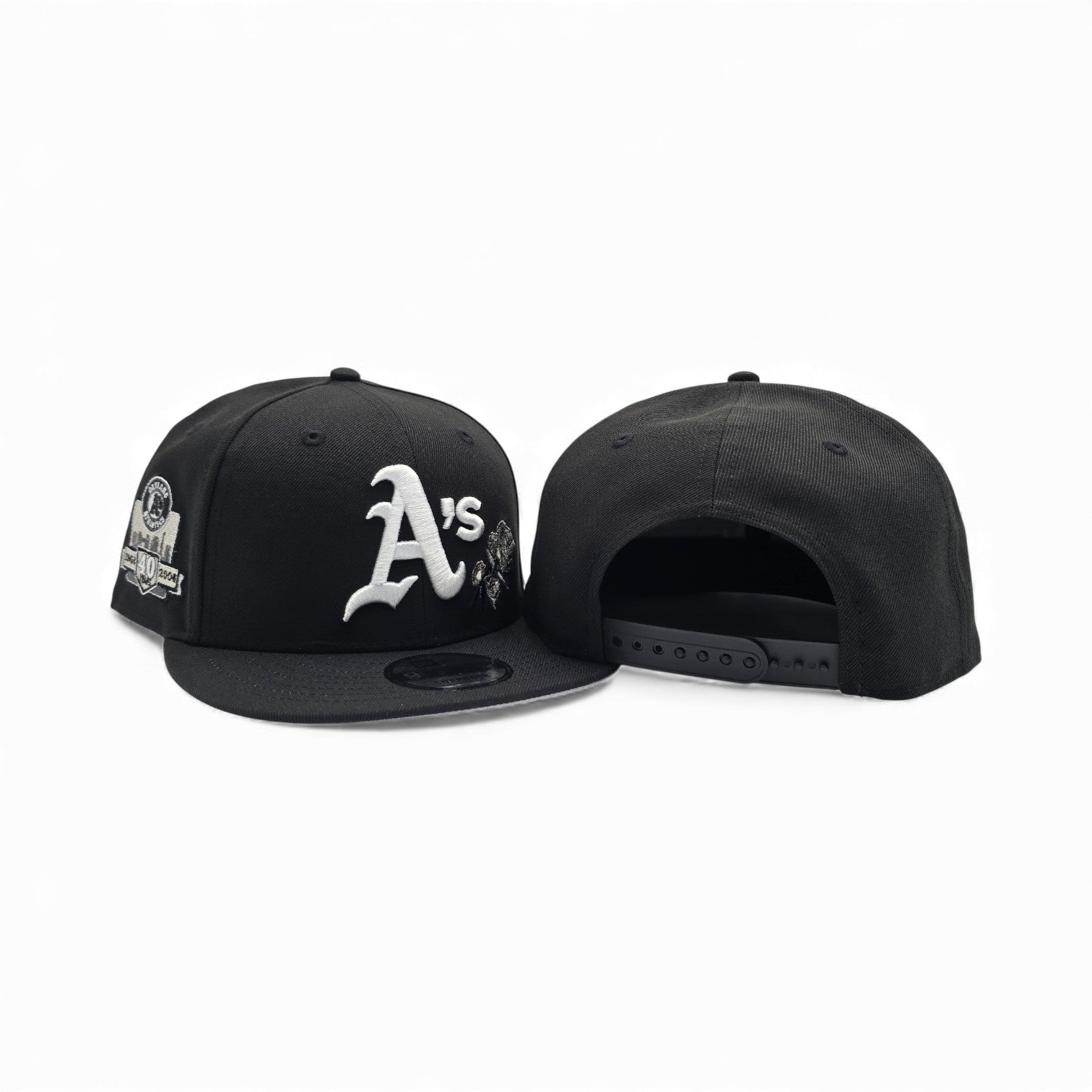 Black Oakland Athletics Rose Logo Gray Bottom 40 Years Side Patch New Era 9Fifty Snapback
