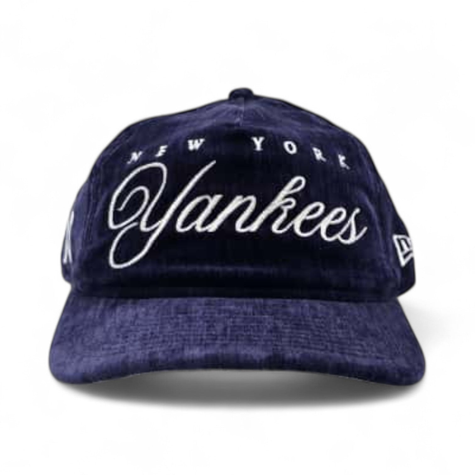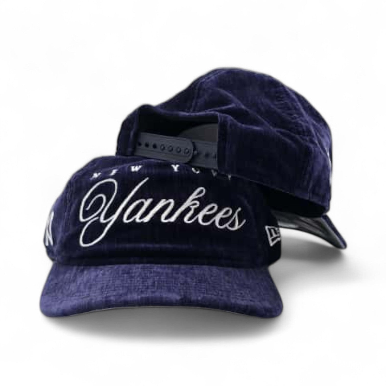 Navy Blue Suede Team Script New York Yankees Gray Bottom New Era 19Twenty Adjustable Snapback