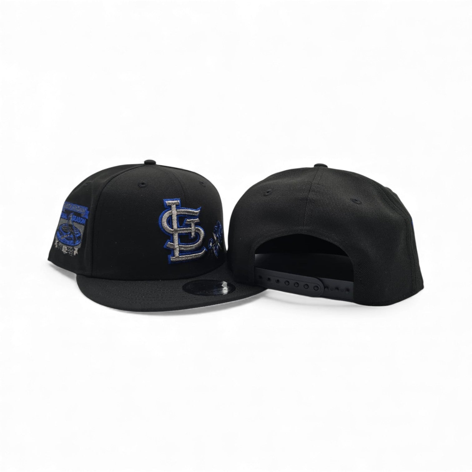 This Black St. Louis Cardinals Rose Gray Bottom Busch Stadium Final Season Side Patch New Era 9Fifty Snapback features a sleek black crown and a visor with a gray bottom, making it a stylish addition to any fan's wardrobe. The iconic rose embroidery pays homage to the team's Busch Stadium...