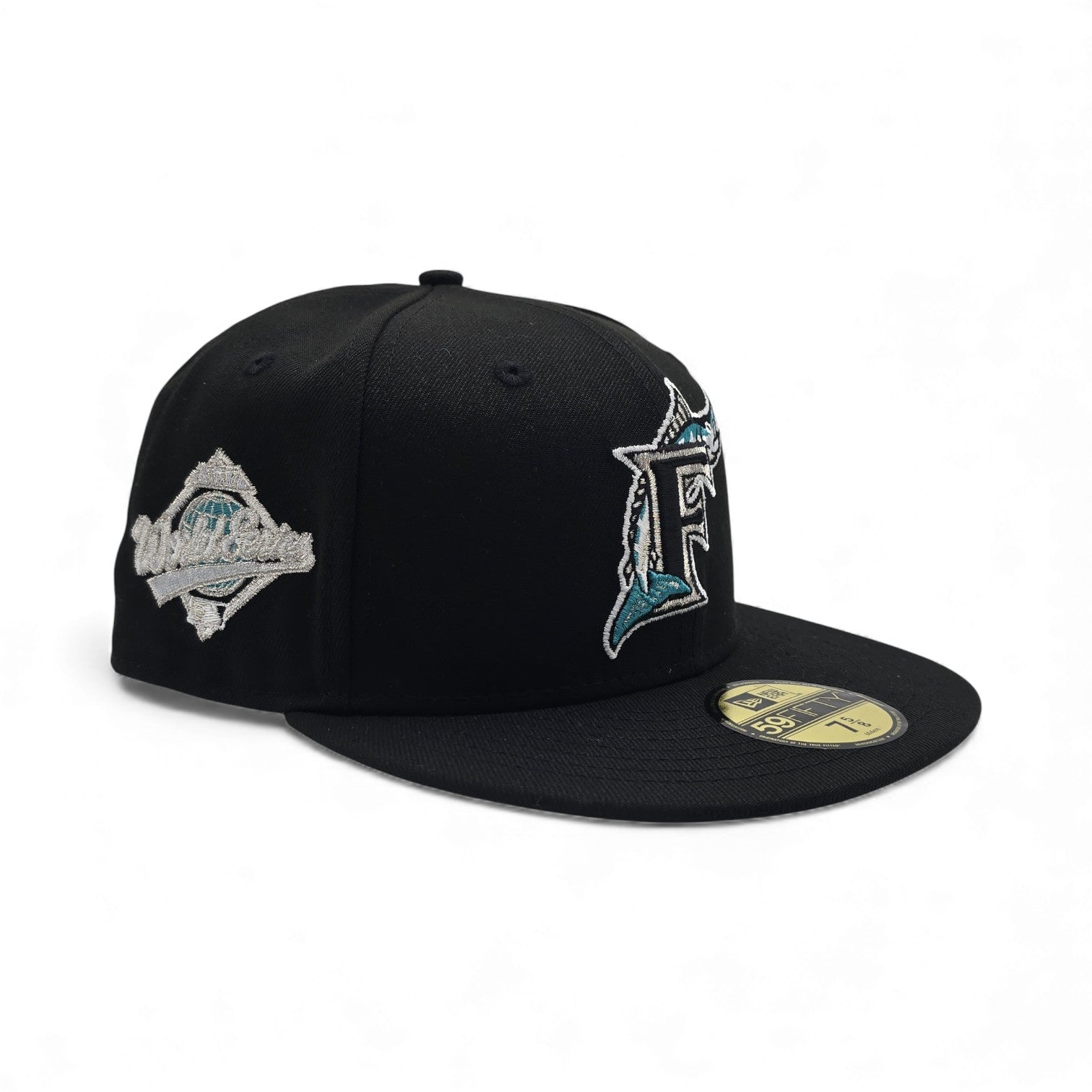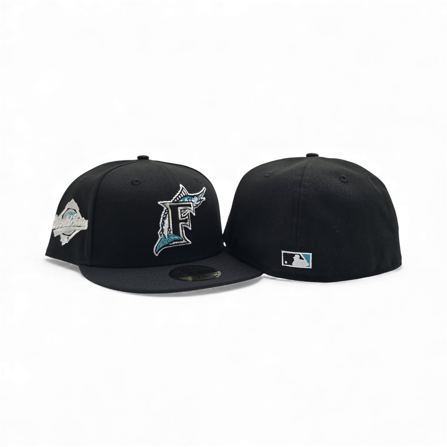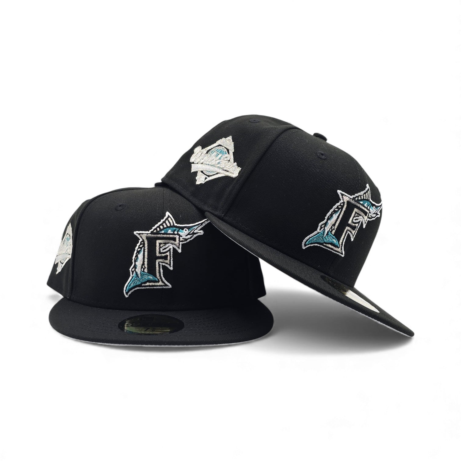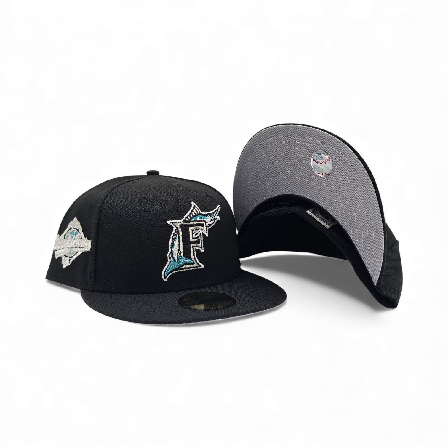 Black Florida Marlins Gray Bottom 1997 World Series Silver Side Patch New Era 59Fifty Fitted Hat