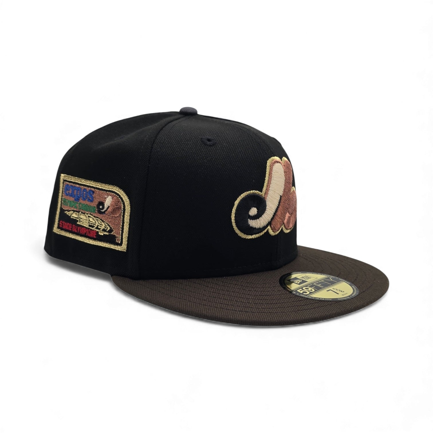 Black Montreal Expos Brown Visor Green Bottom Olympic Stadium Side patch New Era 59Fifty Fitted