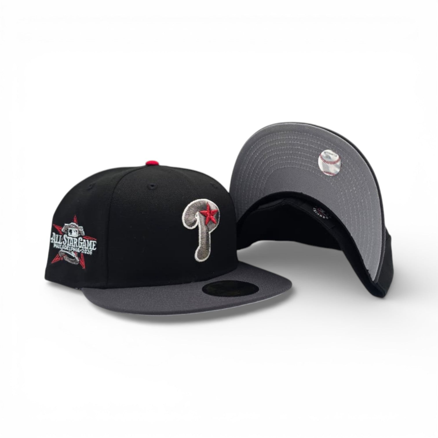 Black Philadelphia Phillies Dark Gray Visor Gray Bottom 2026 All Star Game Side Patch New Era 59Fifty Fitted