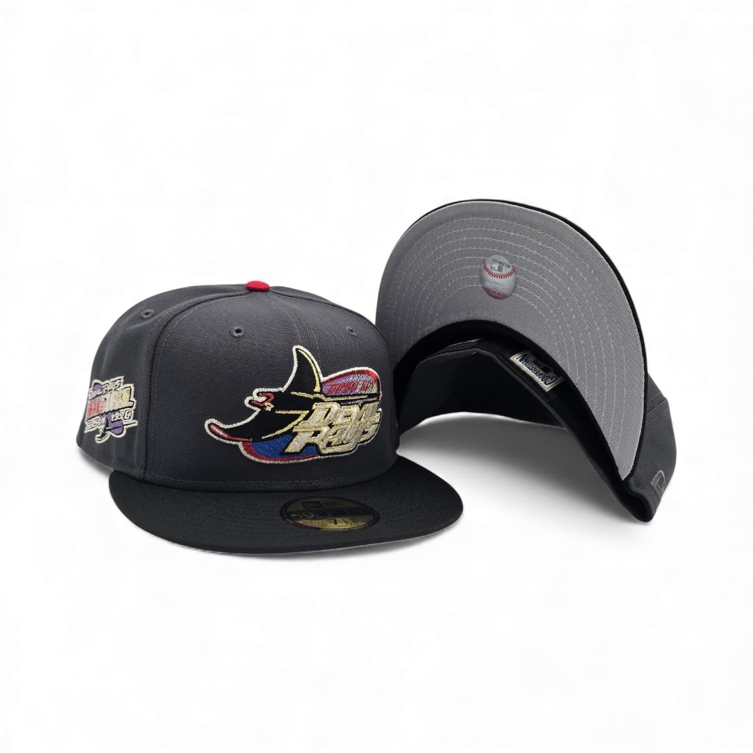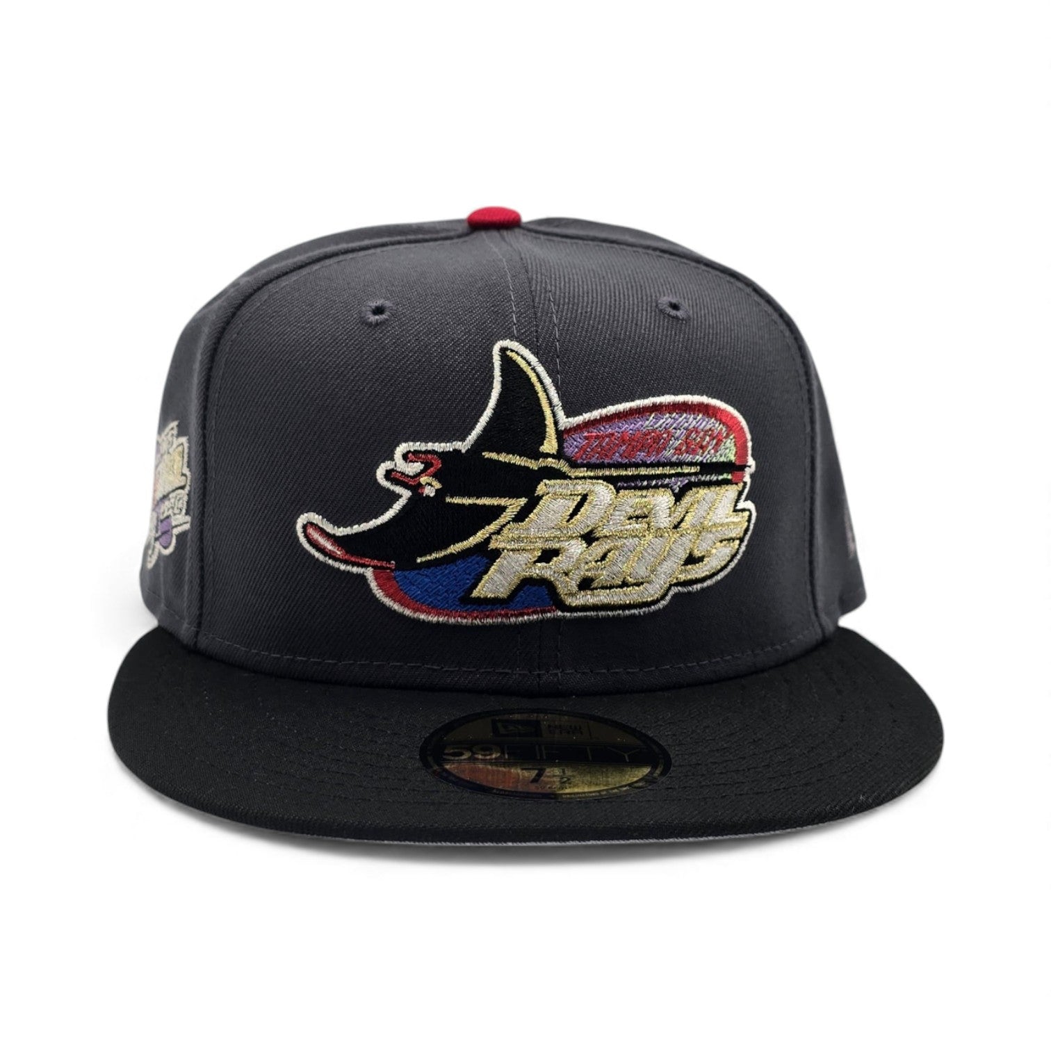 Dark Gray Tampa Bay Rays Black Visor Gray Bottom 1998 Inaugural Season Side Patch New Era 59Fifty Fitted