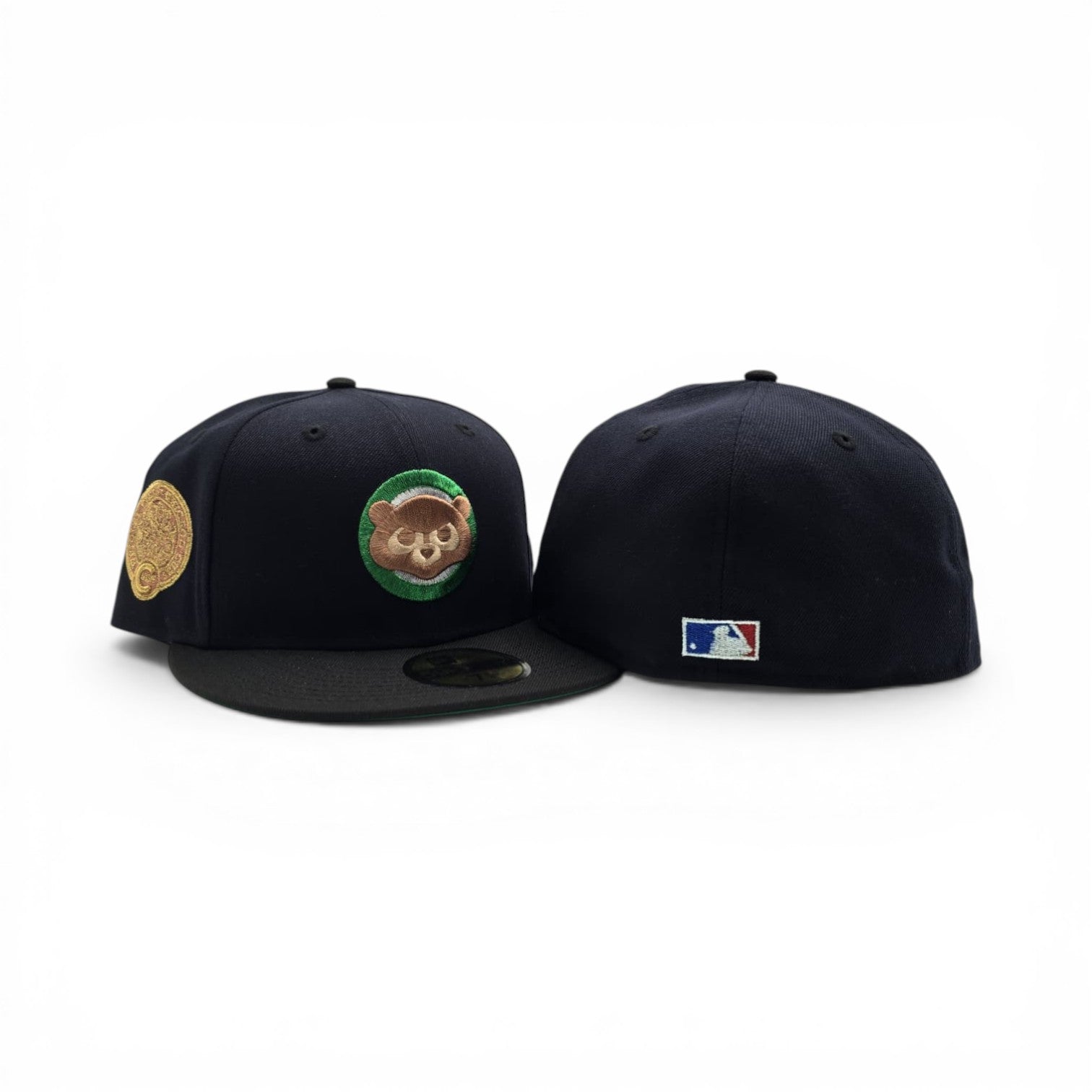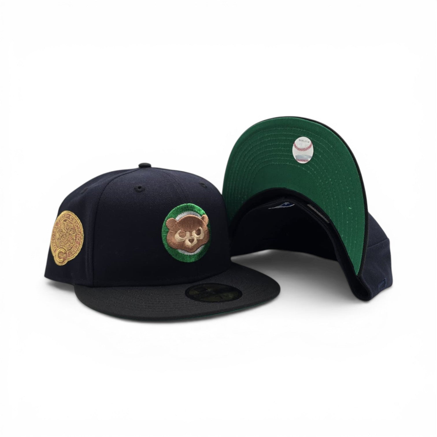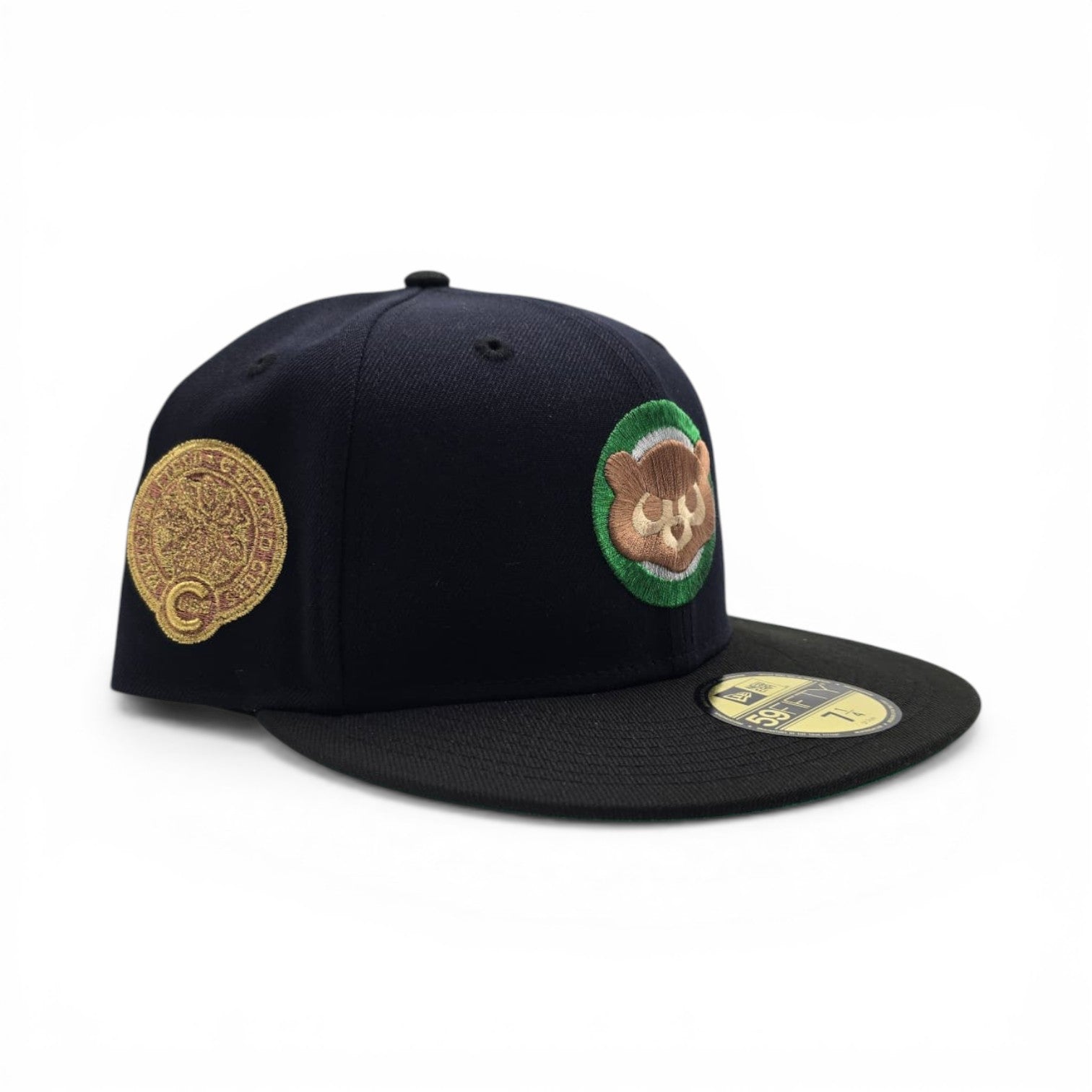 Navy Blue Chicago Cubs Black Visor Green Bottom Wrigley Field Side Patch New Era 59Fifty Fitted