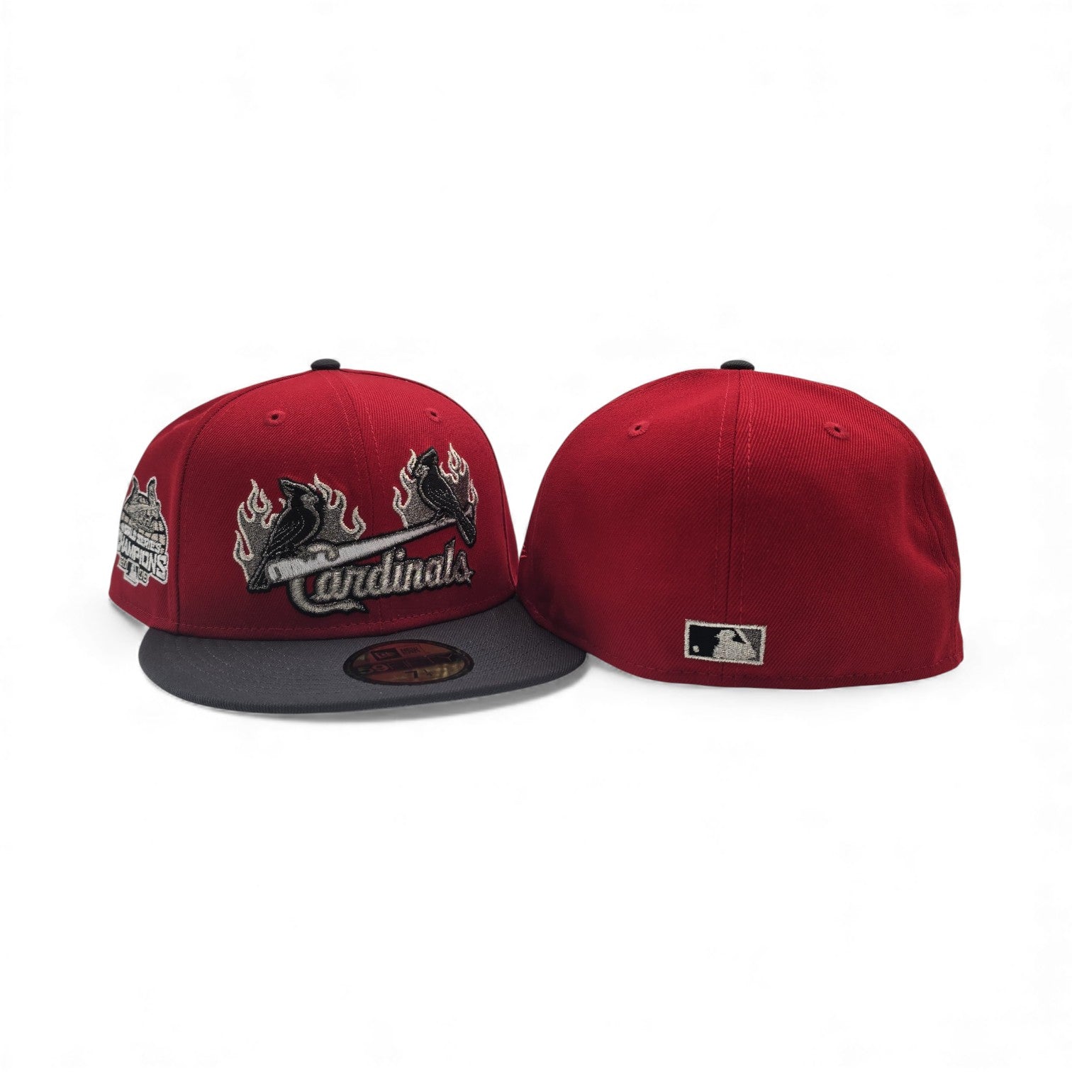 Red St. Louis Cardinals Flame Logo Dark Gray Visor Gray Bottom 2006 World Series Champions Side Patch New Era 59Fifty Fitted